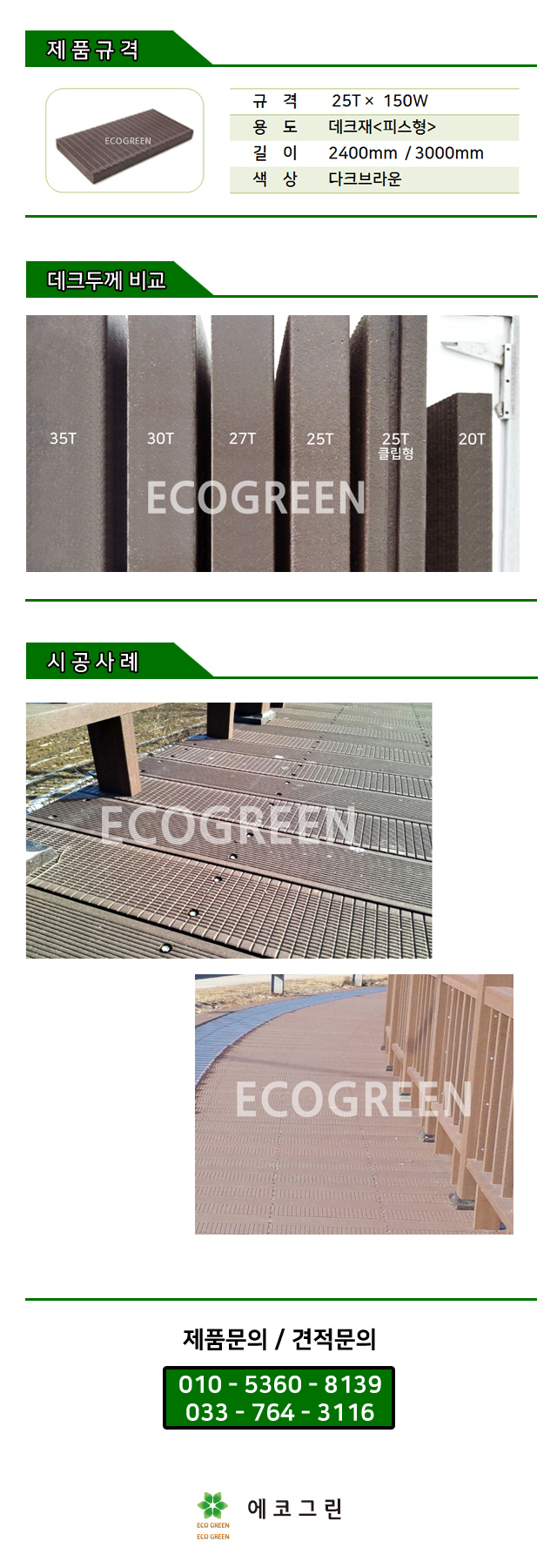 합성목재 데크 이중논슬립데크 25T X 150W ①규 격 : 25TX150W ②원산지 : 국산