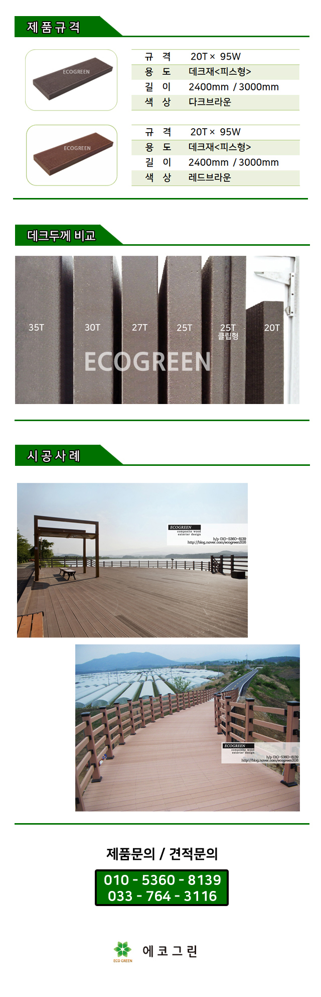 합성목재 데크 솔리드형 20T X 95W 피스형 ①규 격 : 20TX95W ②원산지 : 국산