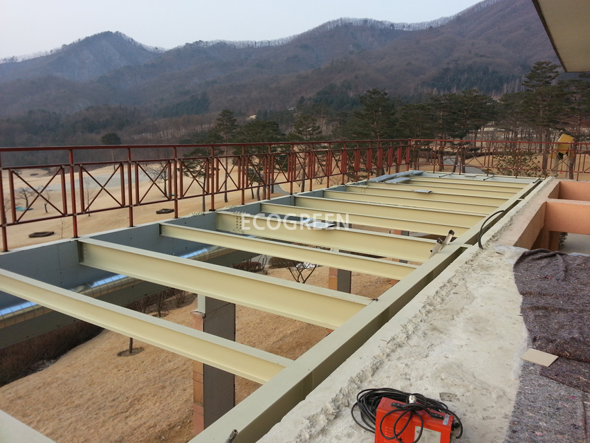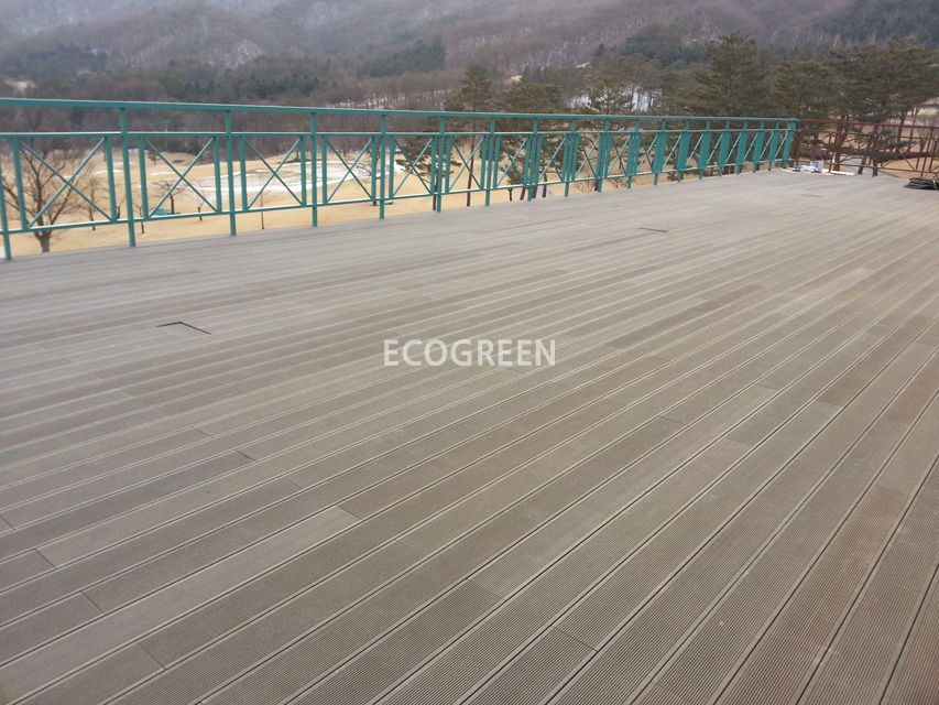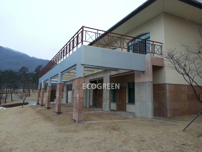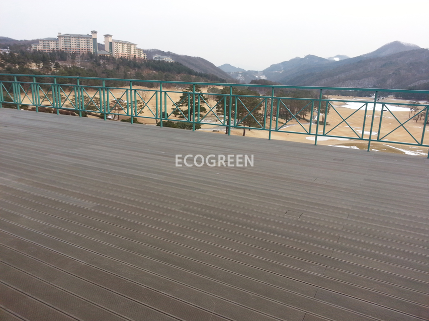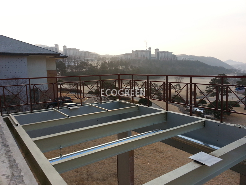 강원도 원주시 지정면 소재 오크밸리 클럽하우스 2층 식당테라스에 H빔을 사용하여 데크를 시공하였습니다.