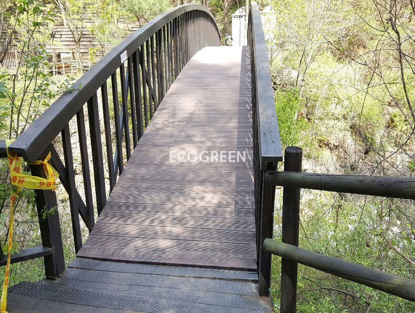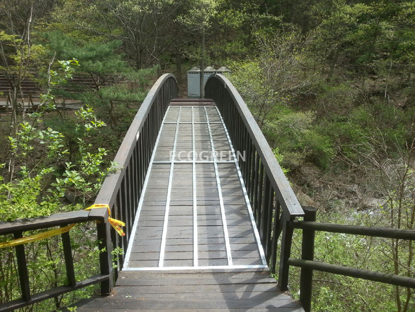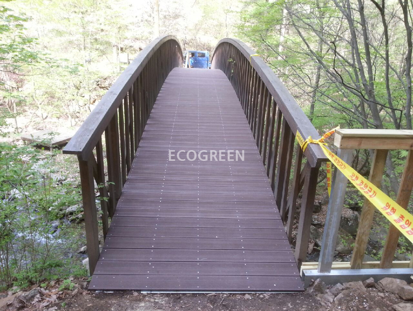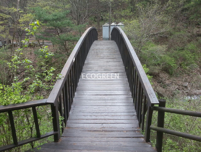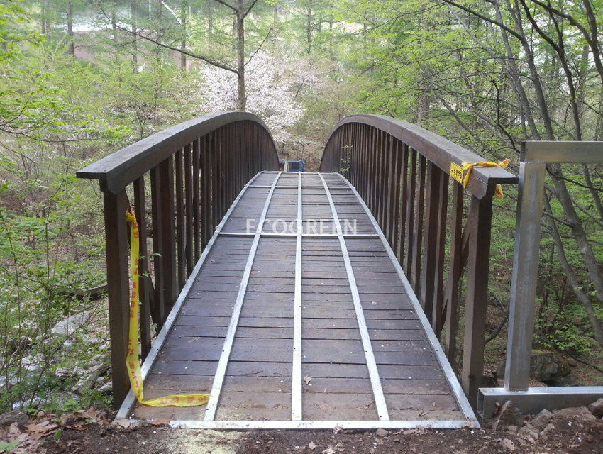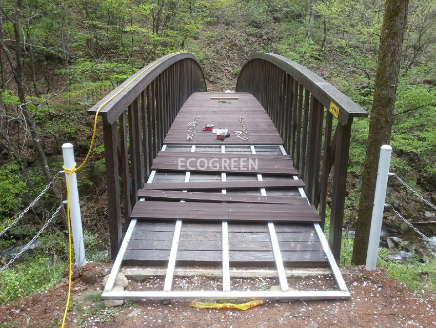 강원도 원주 판부면백운산 자연휴양림 내 육교 방부목 데크에서 합성목재 데크 교체 시공