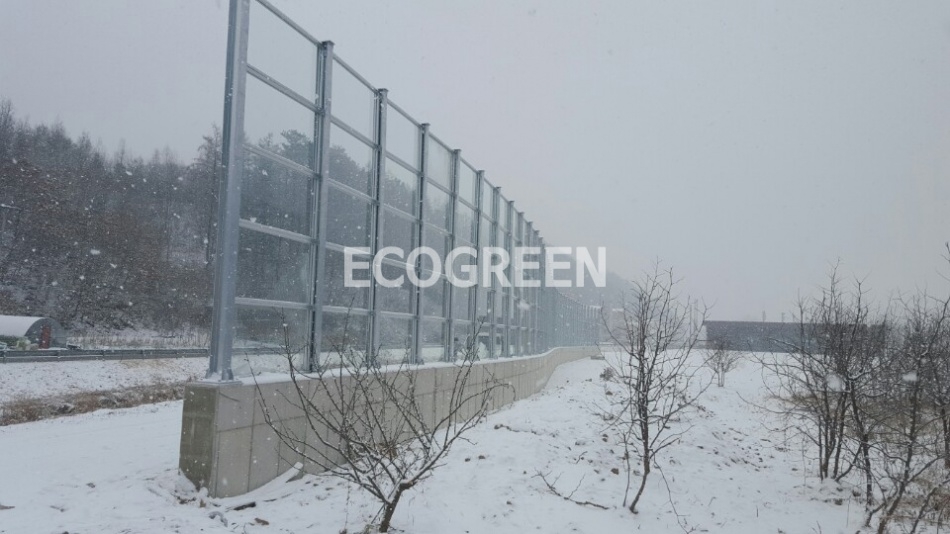 홍천 양궁장 방음벽에 투명 방음벽을 시공하였습니다.