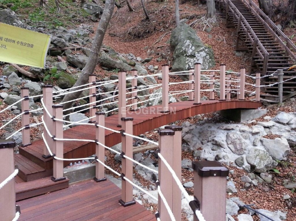 울릉도 산책로에 에코그린의 로프형 브라켓, 상부캡, 하부캡 사용되었습니다.