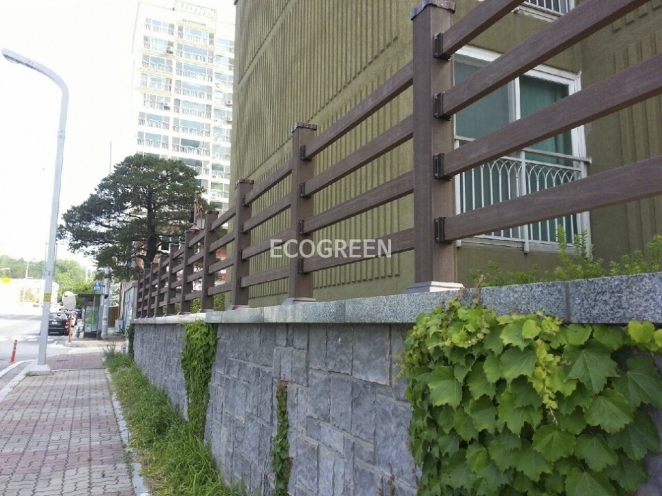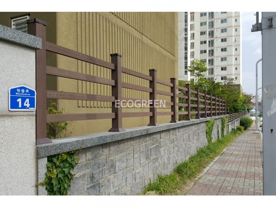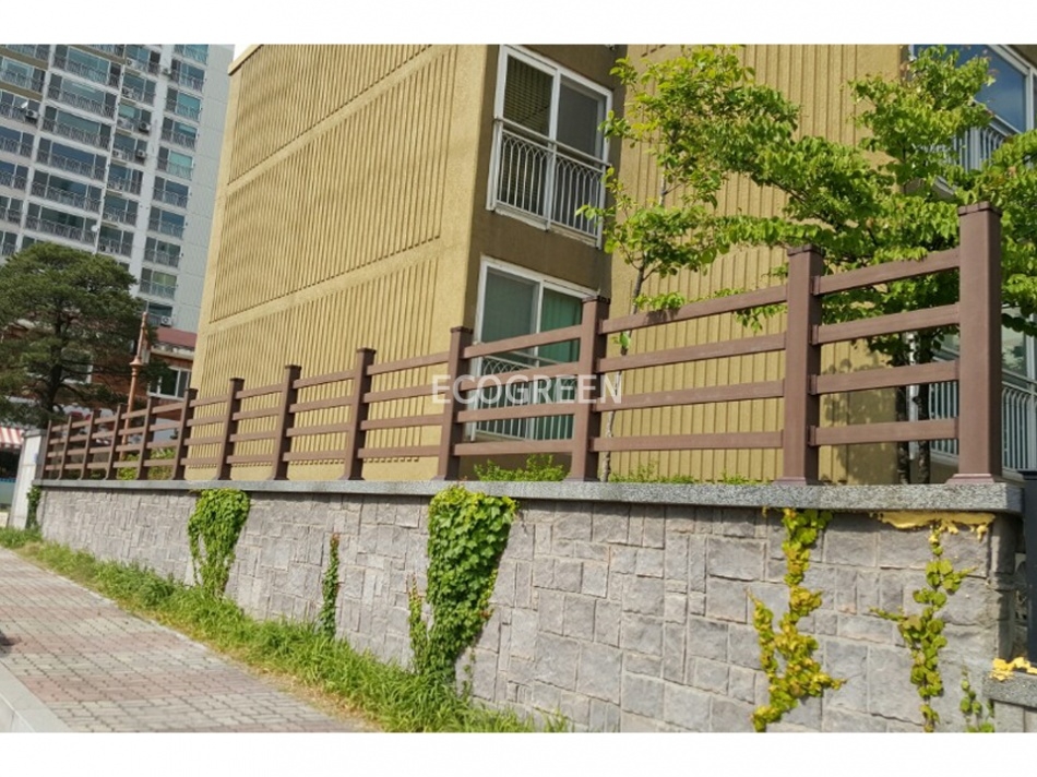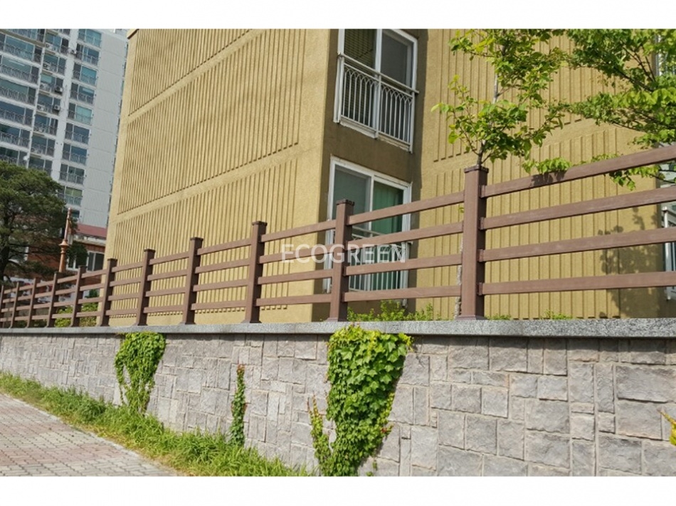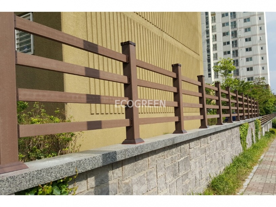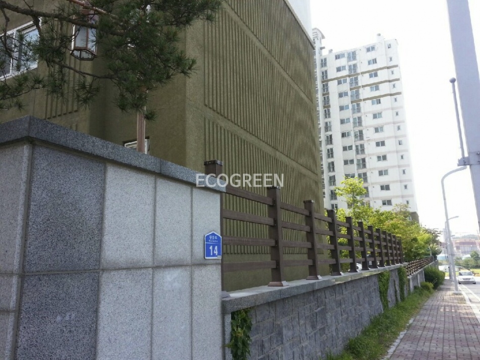 제천 천남동 코아루 아파트 합성목재 난간(5월 26일 시공)에 수평형 4줄이 시공되었습니다.